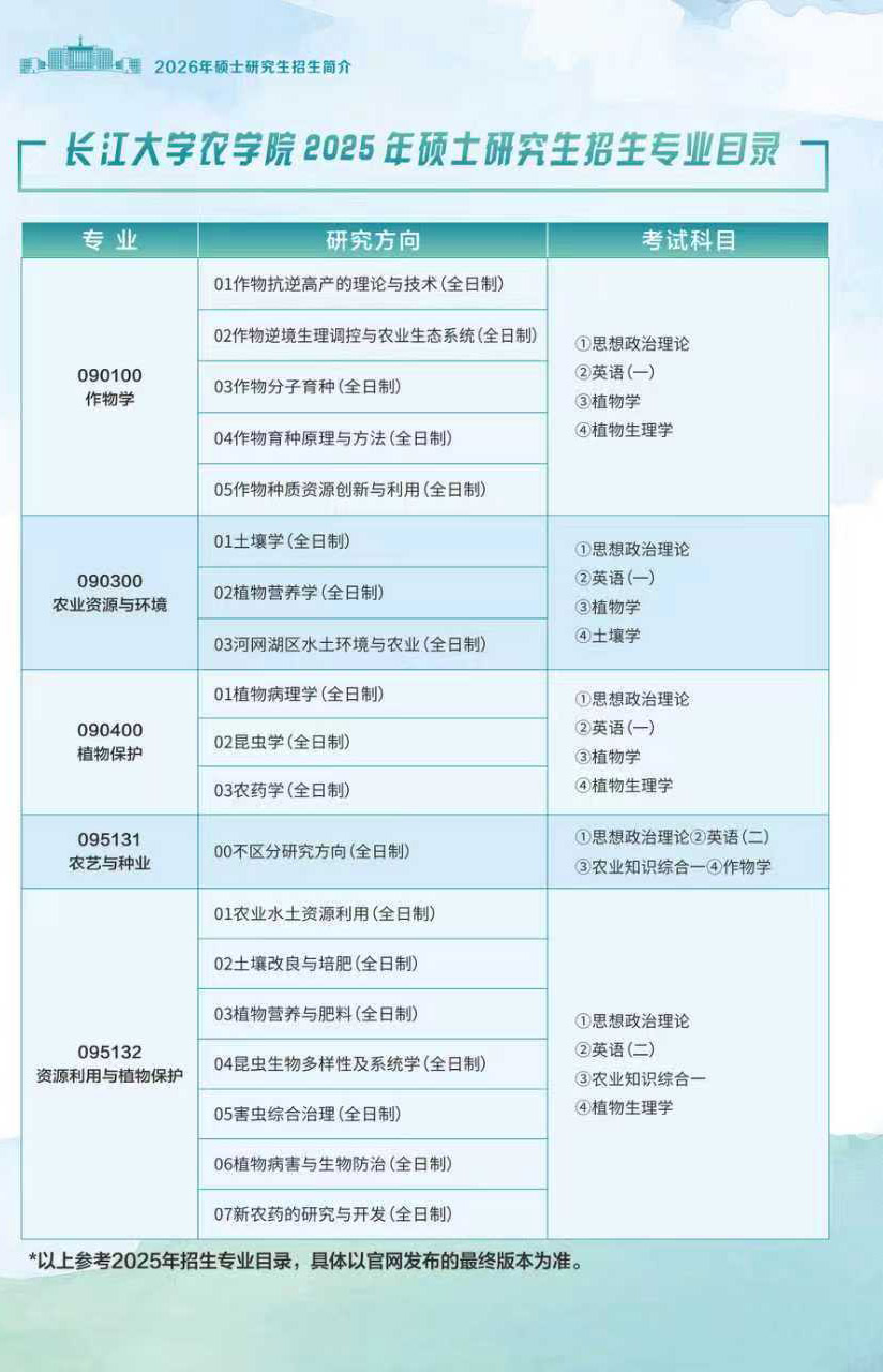 发布时间:2025-09-12 来源:长江大学农学院 编辑:研招在线