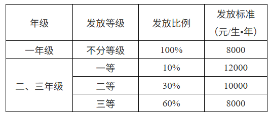 国家助学金:国家助学金发放标准为每生每年6000元,面向全日制非定向研究生(有固定工资收入的除外)。